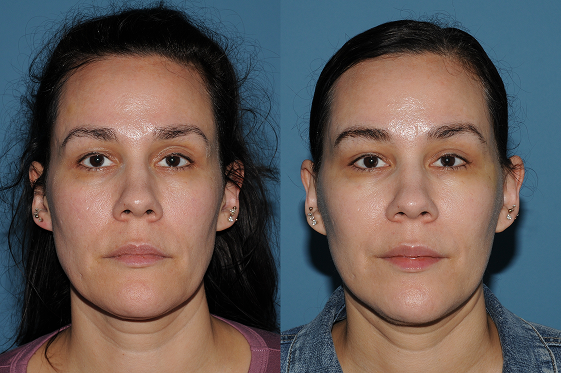 This gives your information as to your appearance shortly Her jawline is well-defined and after a procedure. The chin down images shows that the cheeks are now elevated and the skin is taught across lower face. Her overall face is more oval and less squared. Her aging will be slowed as a result of early intervention.