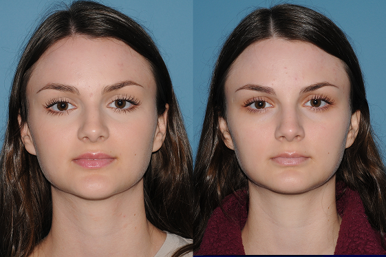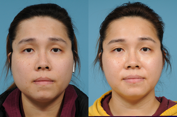 The neurotoxin relaxes the clench muscles, which allows them to shrink over several treatments. Notice the improvement in facial harmony and a restoration of a more oval facial shape.