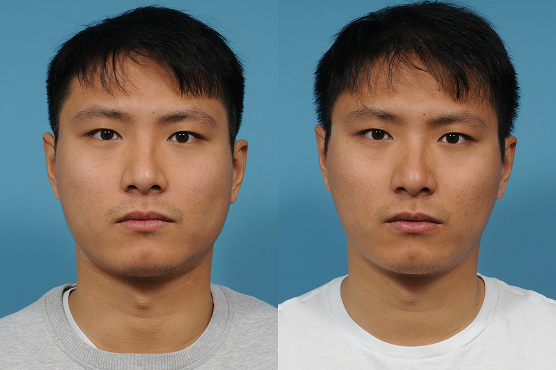 This is a 22 y/o man who looks younger and more athletic after Botox to the masseters for clenching.