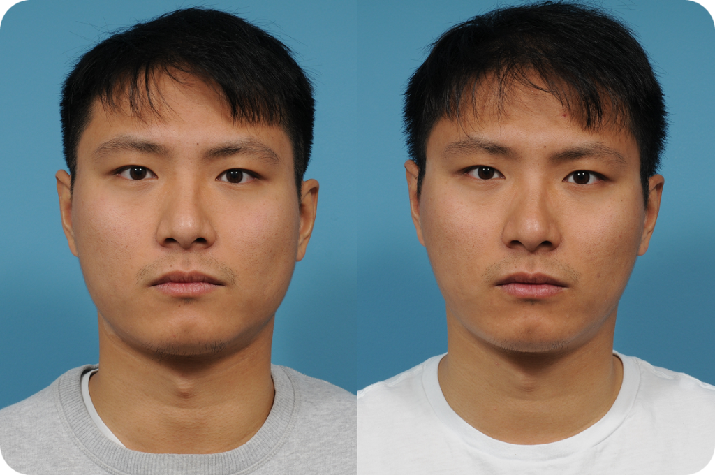 This is a 22 y/o man who looks younger and more athletic after Botox to the masseters for clenching.
